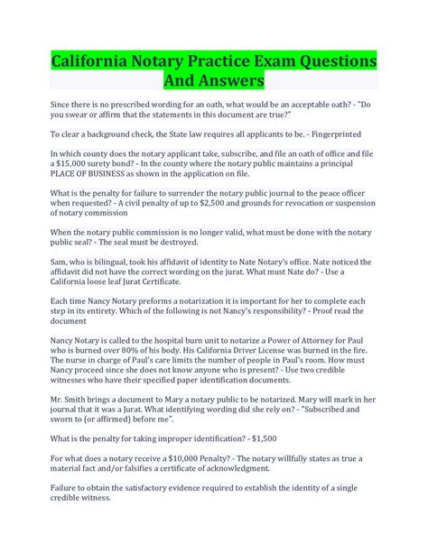 Download NOTARY QUESTIONS AND ANSWERS CALIFORNIA Doc